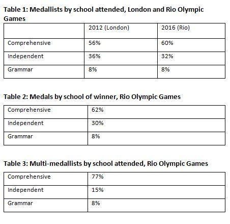 More than 60 per cent of this year’s British medallists – including Jess Ennis-Hill, Max Whitlock and Nicola Adams – were educated at state comprehensive schools, while eight per cent attended grammars.