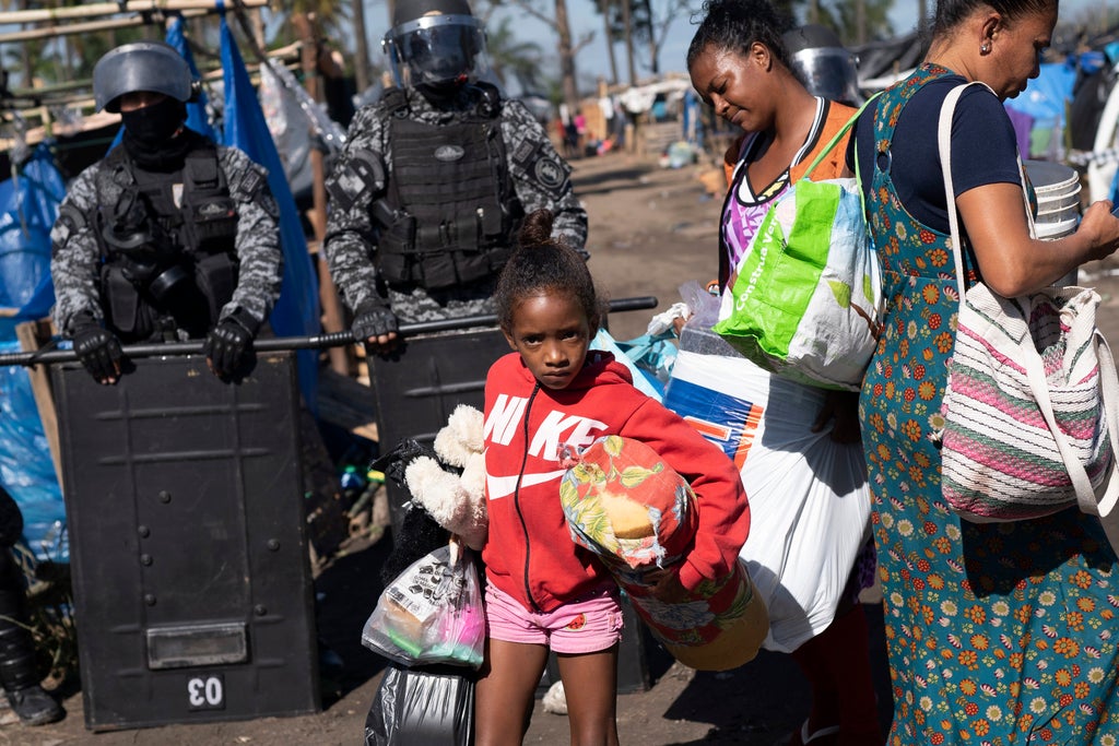 By early afternoon, children could seen carrying their families' few belongings out of the area as heavily armed police stood watch.