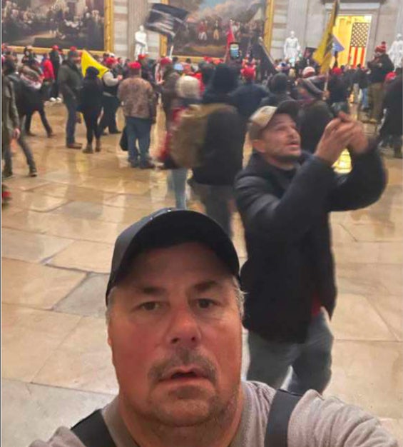 Thomas Fee, 53, came undone after allegedly texting a selfie while storming the Capitol building – captioned "tip of the spear" – to his girlfriend's brother, who happened to be a special agent with the US Diplomatic Secret Service.