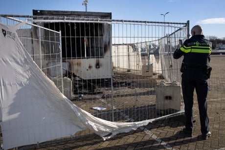 Video from the village of Urk 80 kilometers (50 miles) northeast of Amsterdam, showed youths breaking into the coronavirus testing facility near the village's harbor before it was set ablaze Saturday night.