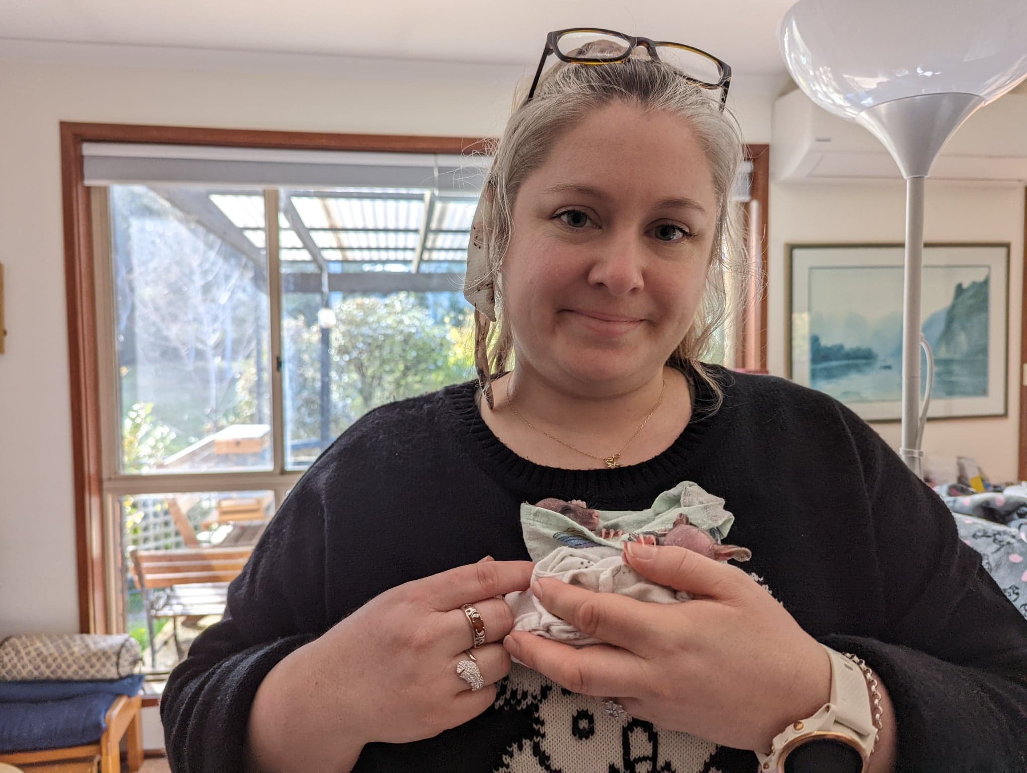 Tasked with caring for very young possum joeys who require round-the-clock feeding, she routinely adopts those whose parents have died from ingesting bait.