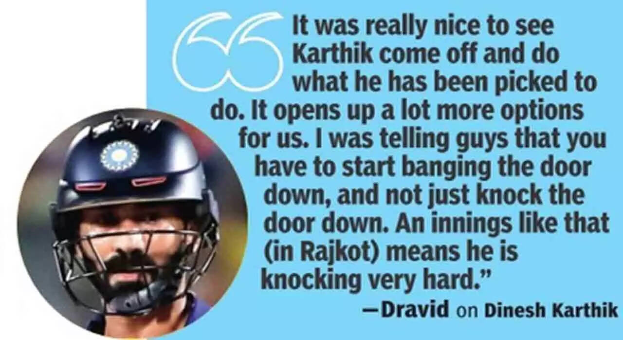 For those staking a claim for a ticket to Australia, the message has already been delivered by Dravid. "I was telling guys that you have to start banging the door down and not just knock. Innings like that means he (Karthik) is knocking very hard."