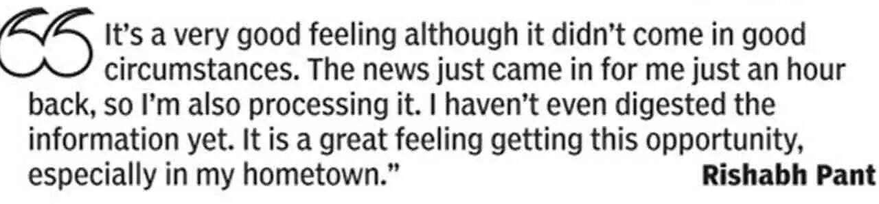 "It's a very good feeling, although it has not come in good circumstances. The news came in just an hour back, so I am also processing it. I really want to thank the people who have stood by me through thick and thin," Pant said while addressing the media.