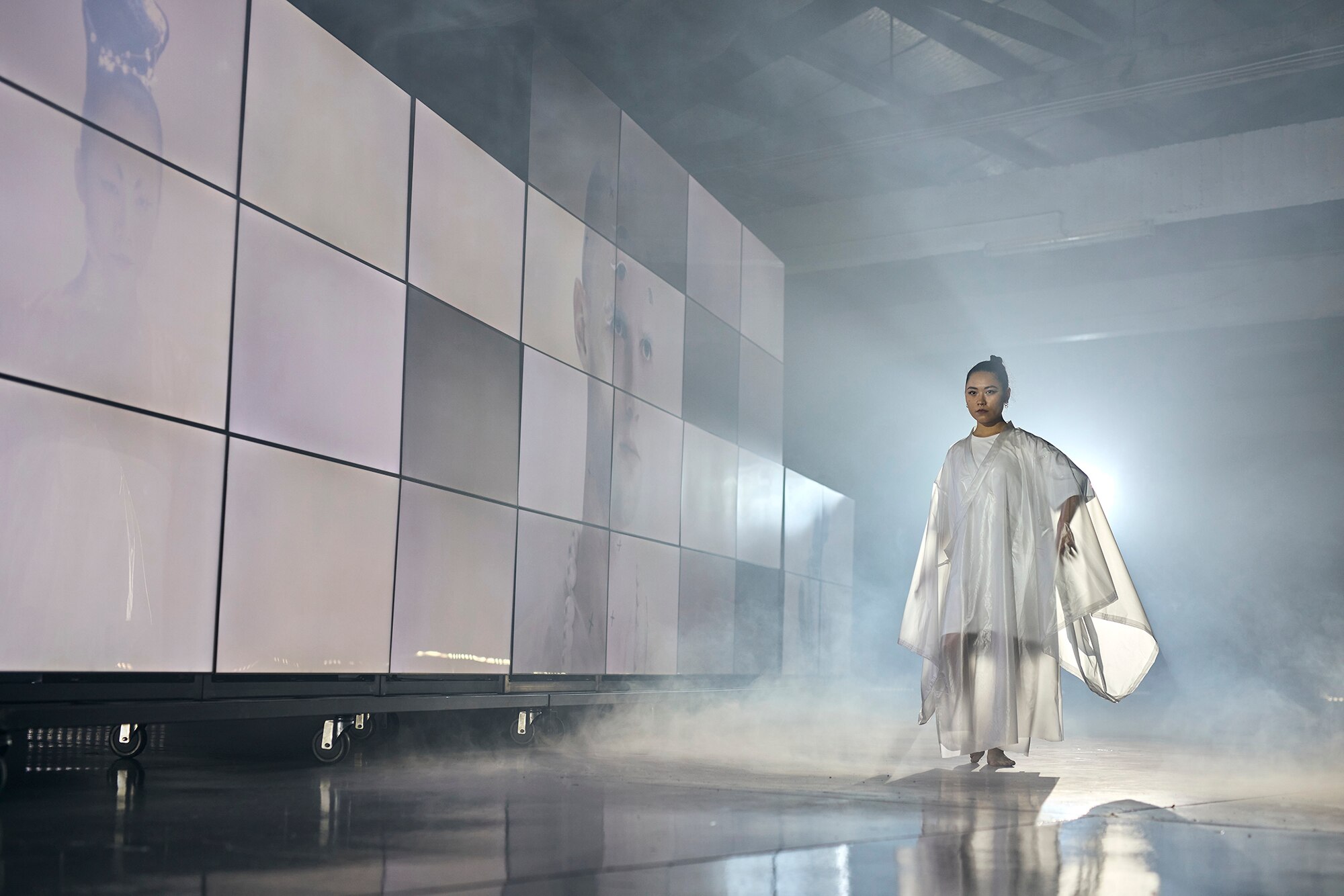 At Golden Square, a car park in the centre of Chinatown that has been turned into a gallery of video works, I walk out of a room and come across opera singer Scotty So, slowly making their way through the space while singing an incongruously high soprano – I later read in the program notes that So is lip-syncing. There is also a bombastic parade in celebration of the moon; at the end, someone reads to us a poem about the moon written by local year 3 students. And Paul Yore's neon crush of bright lights and tacky ephemera grows richer the more time you spend staring at it: it feels like a shrine to Melbourne's post-lockdown self.