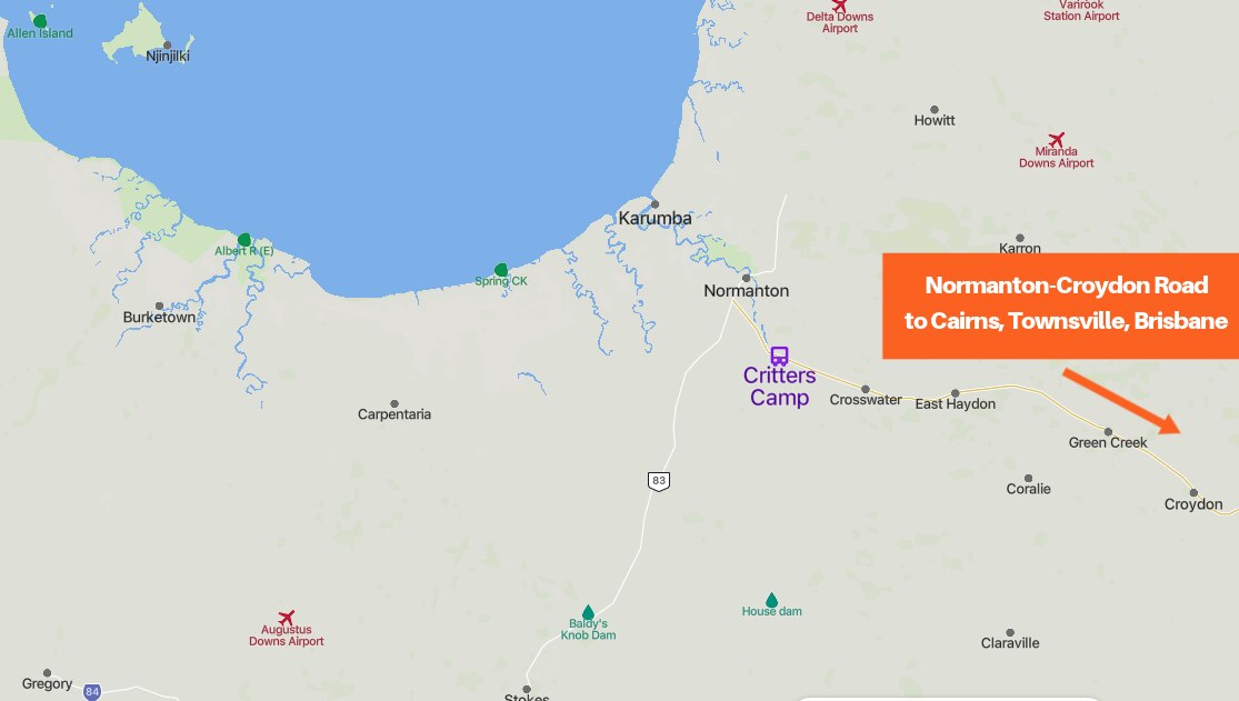 He said supplies were loaded onto trucks in Cairns, Townsville and Brisbane and were eventually driven to Croydon and then on to the Critters Camp rest stop, about 30km south of Normanton.