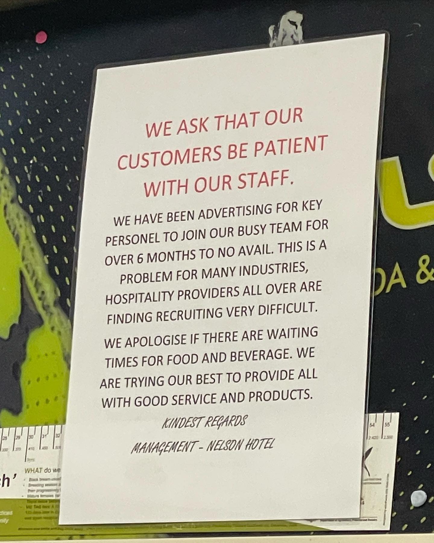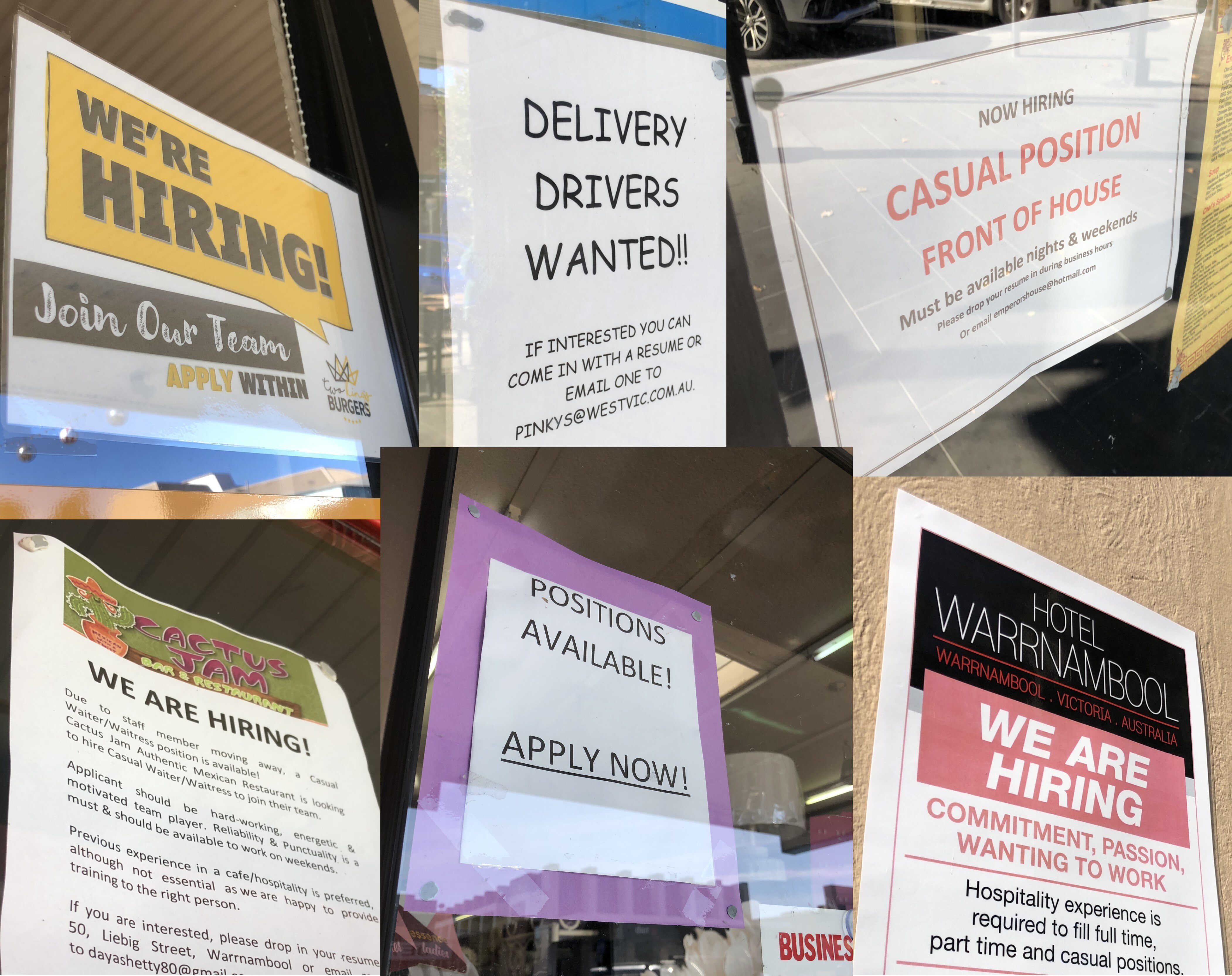 "A lot of the small businesses are finding it a little bit difficult, especially with hospitality — we've got so many jobs advertised out here it's insane.