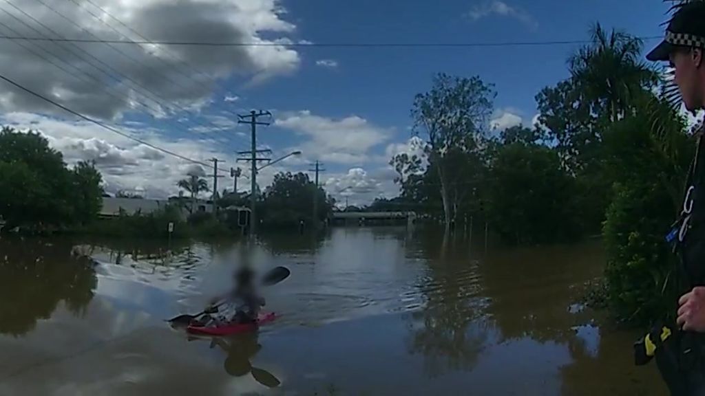 Such is the case with footage of four men peddling through floodwaters at Pine Rivers north of Brisbane three days ago, which has attracted more than 420,000 views and has been shared over several social media platforms.