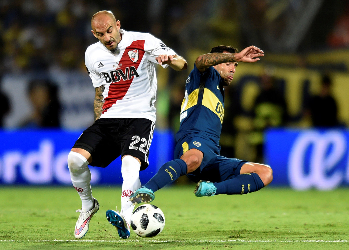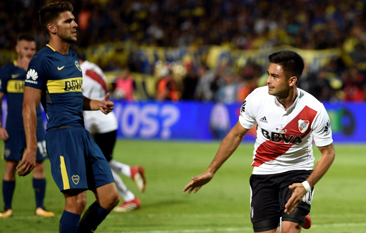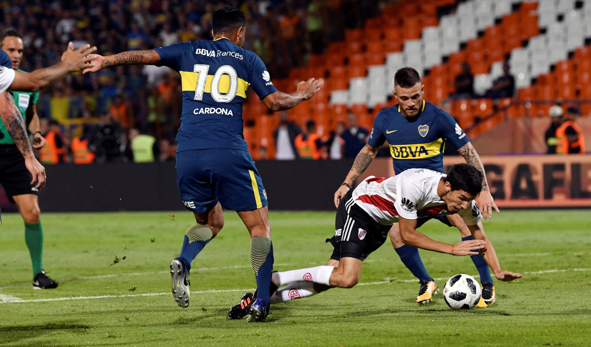 Soccer Football - Boca Juniors v River Plate - Argentine Supercopa - Malvinas Argentinas stadium, Mendoza, Argentina - March 14, 2018 - Boca Juniors' Cristian Pavon and River Plate's Gonzalo Montiel in action. REUTERS/Gustavo Garello Soccer Football - Boca Juniors v River Plate - Argentine Supercopa - Malvinas Argentinas stadium, Mendoza, Argentina - March 14, 2018 - Boca Juniors' Carlos Tevez and River Plate's Enzo Perez in action. REUTERS/Gustavo Garello Soccer Football - Boca Juniors v River Plate - Argentine Supercopa - Malvinas Argentinas stadium, Mendoza, Argentina - March 14, 2018 - Boca Juniors' Paolo Goltz in action against River Plate's Javier Pinola and Enzo Perez in action. REUTERS/Gustavo Garello Soccer Football - Boca Juniors v River Plate - Argentine Supercopa - Malvinas Argentinas stadium, Mendoza, Argentina - March 14, 2018 - Boca Juniors' Cristian Pavon reacts after missing a chance to score. REUTERS/Gustavo Garello Soccer Football - Boca Juniors v River Plate - Argentine Supercopa - Malvinas Argentinas stadium, Mendoza, Argentina - March 14, 2018 - River Plate's Gonzalo Martinez celebrates his goal. REUTERS/Gustavo Garello .Soccer Football - Boca Juniors v River Plate - Argentine Supercopa - Malvinas Argentinas stadium, Mendoza, Argentina - March 14, 2018 - River Plate's Ignacio Fernandez is fouled by Boca Juniors' Edwin Cardona (10) and a penalty is awarded. REUTERS/Gustavo Garello Soccer Football - Boca Juniors v River Plate - Argentine Supercopa - Malvinas Argentinas stadium, Mendoza, Argentina - March 14, 2018 - Boca Juniors' Carlos Tevez and River Plate's Javier Pinola in action. REUTERS/Gustavo Garello Soccer Football - Boca Juniors v River Plate - Argentine Supercopa - Malvinas Argentinas stadium, Mendoza, Argentina - March 14, 2018 - Boca Juniors' Cristian Pavon and River Plate's Ignacio Fernandez in action. REUTERS/Gustavo Garello