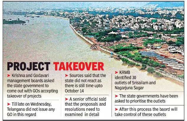 Sources said the Telangana government is of the view that the deadline for takeover is October 14 and there was no need to hurriedly issue GOs on October 13 itself. Also, the state government is still trying and is hoping that the Centre may defer the takeover as chief minister K Chandrasekhar Rao requested Prime Minister Narendra Modi and union Jal Shakti minister Gajendra Singh Shekhawat. A senior official in the state government said that they need to examine the proposal and resolution of the two boards before acting on them.