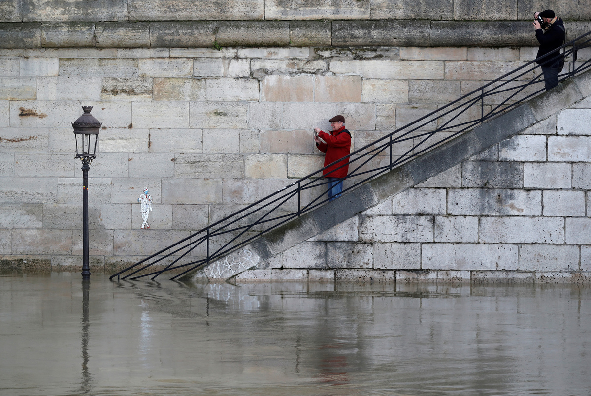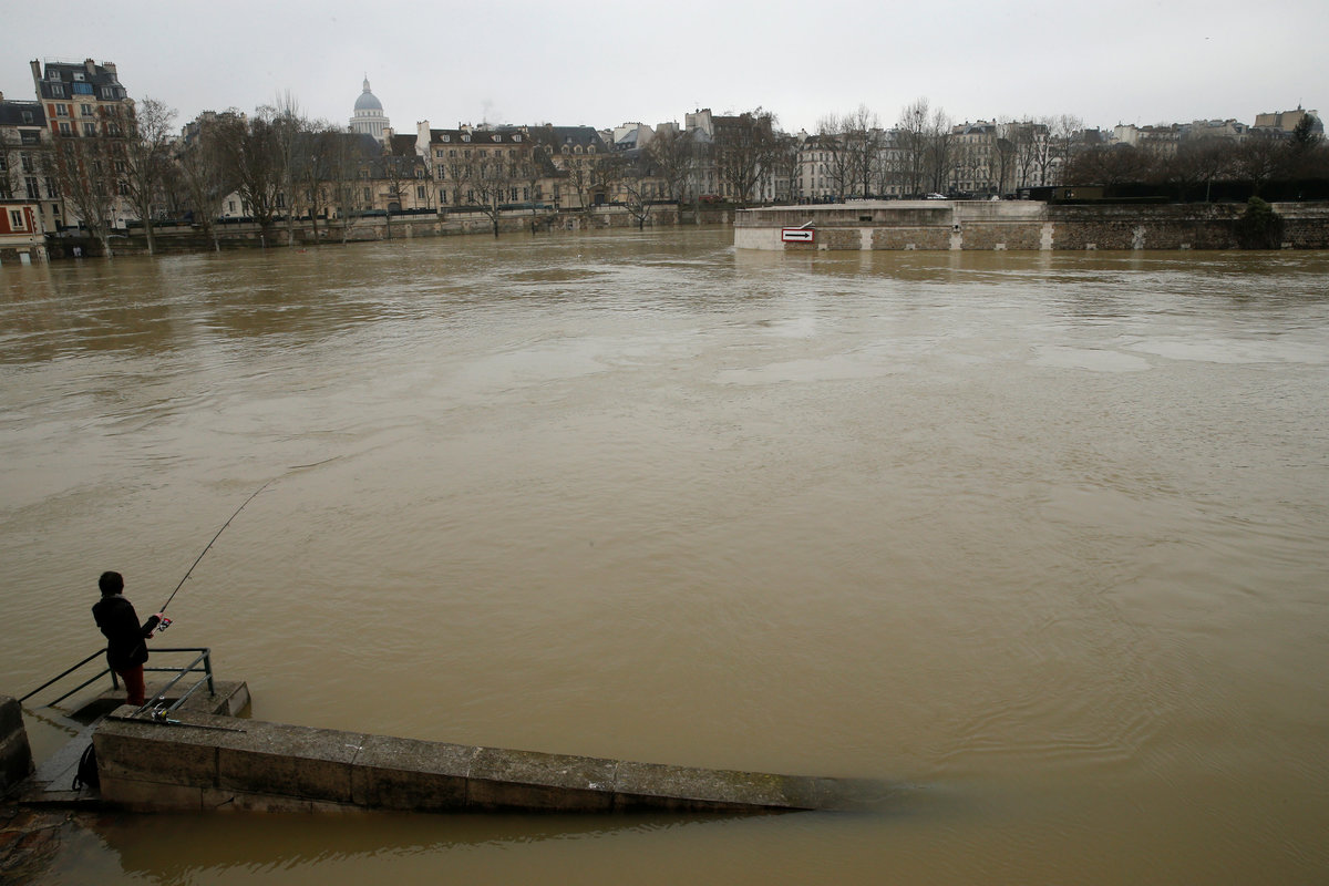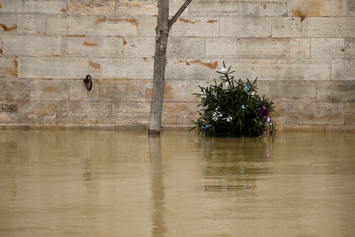 A Christmas tree next to a tree is seen on the flooded banks of the River Seine in Paris, France, after days of almost non-stop rain caused flooding in the country, January 27, 2018. REUTERS/Pascal RossignolA man fishes on the flooded banks of the River Seine in Paris, France, after days of almost non-stop rain caused flooding in the country, January 27, 2018. REUTERS/Pascal RossignolA ticket booth for sightseeing boats is partly submerged by the River Seine after days of almost non-stop rain caused flooding in the country, in Paris, France January 27, 2018. REUTERS/Mal LangsdonA man fishes on the flooded banks of the River Seine in Paris, France, after days of almost non-stop rain caused flooding in the country, January 27, 2018. REUTERS/Pascal RossignolA street lamp and a tree are seen on the flooded banks of the River Seine in Paris, France, after days of almost non-stop rain caused flooding in the country, January 27, 2018. REUTERS/Pascal RossignolGeneral view of the Seine River that overflows its banks as heavy rains throughout the country have caused flooding, in Paris, France, January 26, 2018. REUTERS/Sandra AugerMen take pictures of a street lamp on the flooded banks of the River Seine in Paris, France, after days of almost non-stop rain caused flooding in the country, January 26, 2018. REUTERS/Christian Hartmann