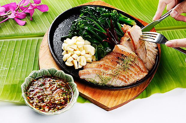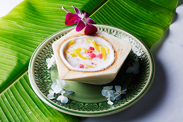 The two carnivorous mains options share three dishes -- green curry with free range chicken, stir-fried prawn in sweet and sour sauce, and stir-friend indigenous vegetables in oyster sauce. However, you can choose between the Rattanakosin Set with its delicious grilled Australian beef tenderloin with Thai sauce, or the Krung Thonburi Set, with baked seabass and ginger. The veggie option -- the Ayutthaya Set -- swaps the chicken for vegetables and leads with stir-fried agricultura protein with mushrooms and cashew nuts.