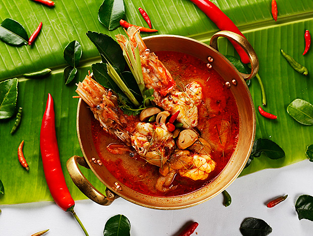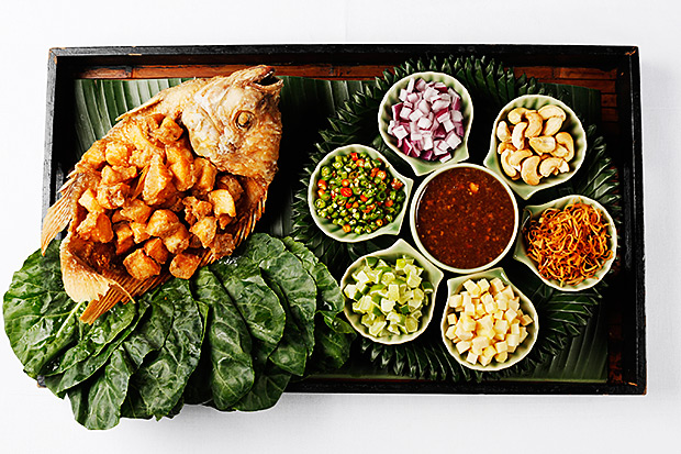 Thai Cultural Night is an event designed for you to wander and browse, reminisce and feast. But where to begin? The menu helpfully groups the dishes by style -- crushed (salads) fried, grilled and soups -- but it's best to leave the menu on the table and walk outside to let your senses decide. At the numerous food stations, tub tim fish crackle on the grill, prawns and pork sizzle in oil, and mieng kham is carefully prepared. Perhaps the prettiest dish is a small wooden bowl filled with pomelo salad -- pomelo, fried red onion, shaved coconut -- crowned with a succulent shrimp. It's so handsome it looks like it's been visually enhanced, but there's no Instagram filter for flavour, nor would one be needed. It's delicious.