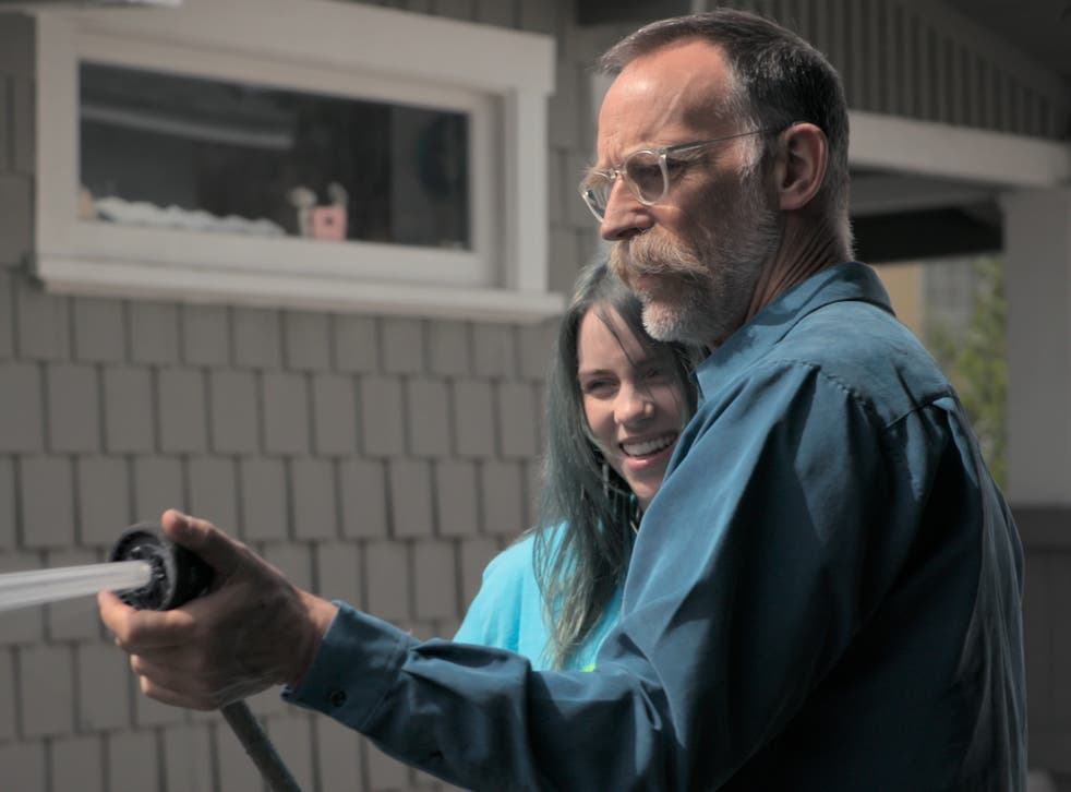 “Billie has two things that are distinct to this moment in time,” Cutler explains. “One is that she’s a person born in 2001 meaning every minute of her life is recorded somewhere. The second is that she has parents who recognised early on she was involved in something remarkable and chose to chronicle it.” That “something remarkable” Cutler is referring to is the singer’s 2019 debut album When We All Fall Asleep, Where Do We Go? – co-written and produced by her brother, it went on to earn the musician five Grammys. So while the director does offer some customary snippets of grainy footage to coo over (a baby Billie is held up over a piano as her tiny feet dance across its keys), Cutler has dedicated the most time to home videos of Eilish as we know her now: a talented teenager with a dye job – in some scenes, stormy blue; in others, her signature raven black with toxic green radiating from the roots. Footage ripped from the GoPro camera their mum set up in Finneas’s bedroom shows the duo experimenting with lyrics, practicing secret handshakes and generally shooting the s***. “We see them thinking, we see them creating, we see them in conflict, we see them in fear, we see them creating art and it’s beautiful,” Cutler gushes.