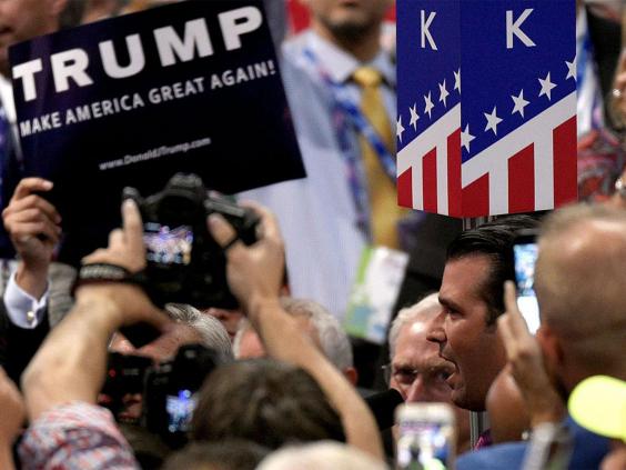 "Congratulations Dad, we love you!" And so it was, at 7.11 in the evening, that Donald Trump Jr stood with his delegation, New York, and announced that the 89 votes it was giving to his father had formally put him over the toop. It was done. Over. Those fired: Cruz, Jeb, Marco, Kasich, Carson, Huckabee, the list is long. The lights played on the crowd and the band struck up 'New York, New York'.