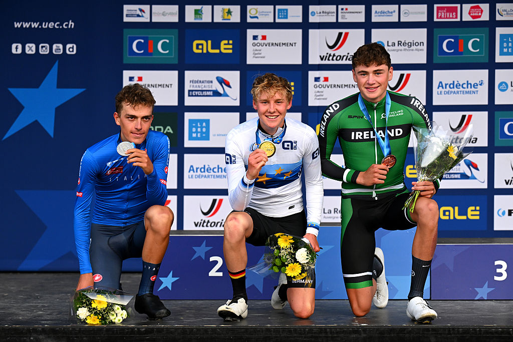 It was the first gold medal of this European Championships, so far, for Germany. The 16-year-old, who turns 17 in one month, was second at road nationals in June and 16th in the road race at Road World Championships in Rwanda. He showed Friday he was still in top form from his overall victory a month ago at Grand Prix Rüebliland in Switzerland.