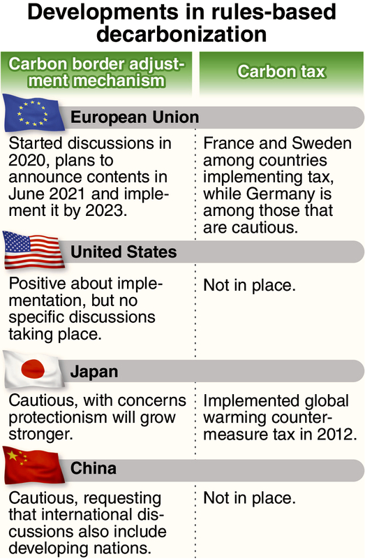 However, many businesses and others are cautious about the idea because decarbonization technologies have not been established and such measures will directly affect companies emitting large amounts of CO2, such as steel companies.