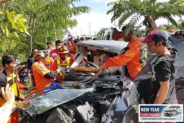 One of the worst accidents was a crash involving a car and a pickup truck in Phimsai district of Nakhon Ratchasima on Tuesday, which took the lives of all five people returning to Bangkok in the sedan after merit-making ceremony at a nearby temple.