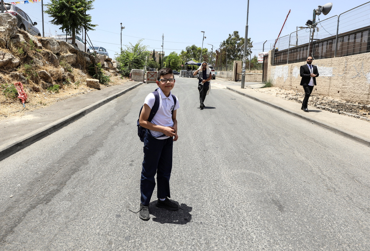 Twice a day the young Palestinian schoolgirl has to present her papers to the armed Israeli police stationed 24 hours a day at roadblocks both ends of her street, waiting for permission to go to and from her home.