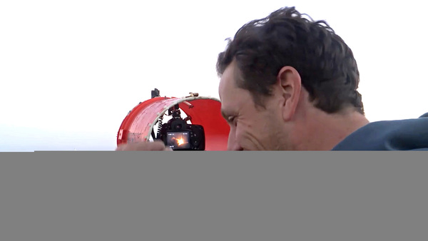 The photographer stood up his tripod, mounted his camera on a small platform inside the horizontal orange bucket and, as a test, called out, "Fire." A moment later, a plexiglass door the size of a large deck of cards popped open at the base of the bucket, and there was a steady click, click, click of the camera.