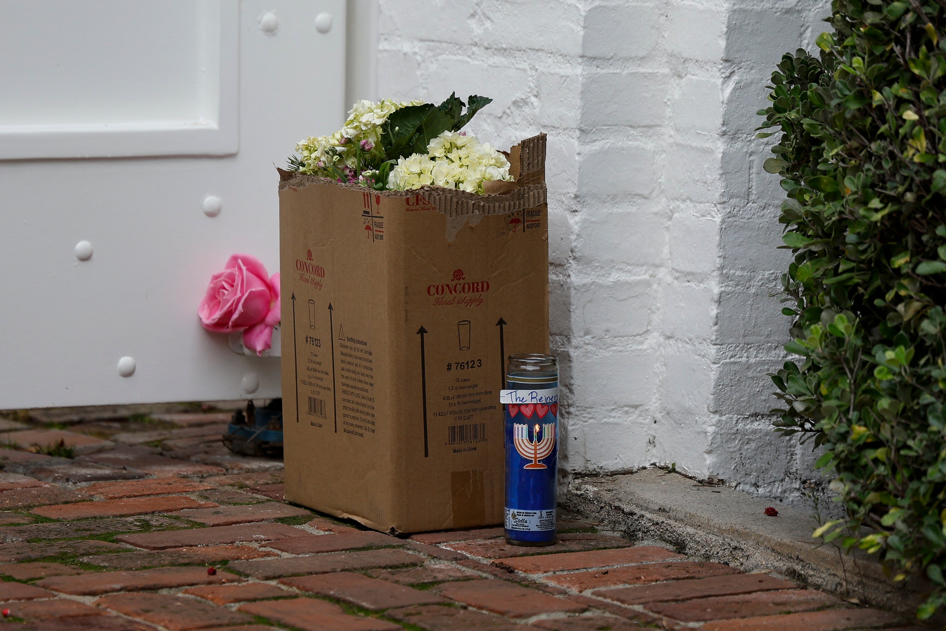 Mourners left flowers, candles in front of the Reiners' Los Angeles home