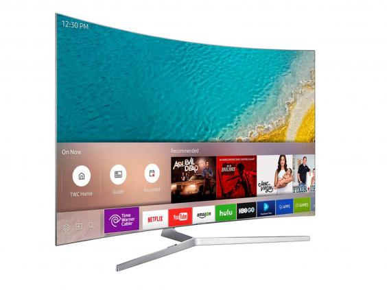 And curved isn’t the only new tech Samsung is pushing. “We’re talking today about bezel-less design that’s almost floating in front of you.” The flagship Samsung models boast screens that really don’t have a perceptible frame around them, just a thin black line between the edge of the picture and the air beyond. And then there’s 360 Design, where the company has taken care to clad the back of the telly to look good, not a mess of sockets and cables.