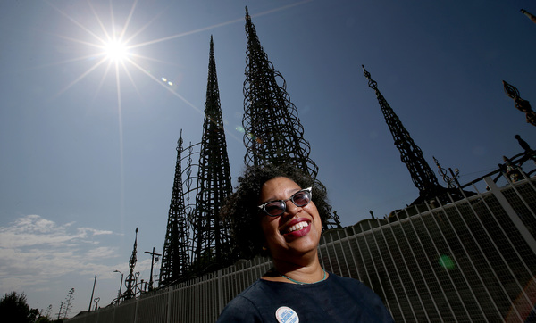 "I love that he made it from found materials, which as a poet means a lot to me," says Lewis, who has a doctorate in poetry and visual studies from USC. "When I come here, I do feel like the 4-year-old is skipping around in me. You're always learning more and more from these towers. You can never exhaust it."