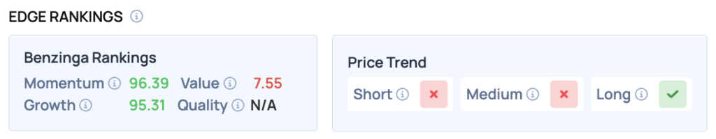 Benzinga Edge Rankings: Benzinga Edge stock rankings, which give you four critical scores to help identify the strongest and weakest stocks to buy and sell, show Robinhood with standout Momentum and Growth scores of 96.39 and 95.31, respectively, alongside a bullish long-term price trend.