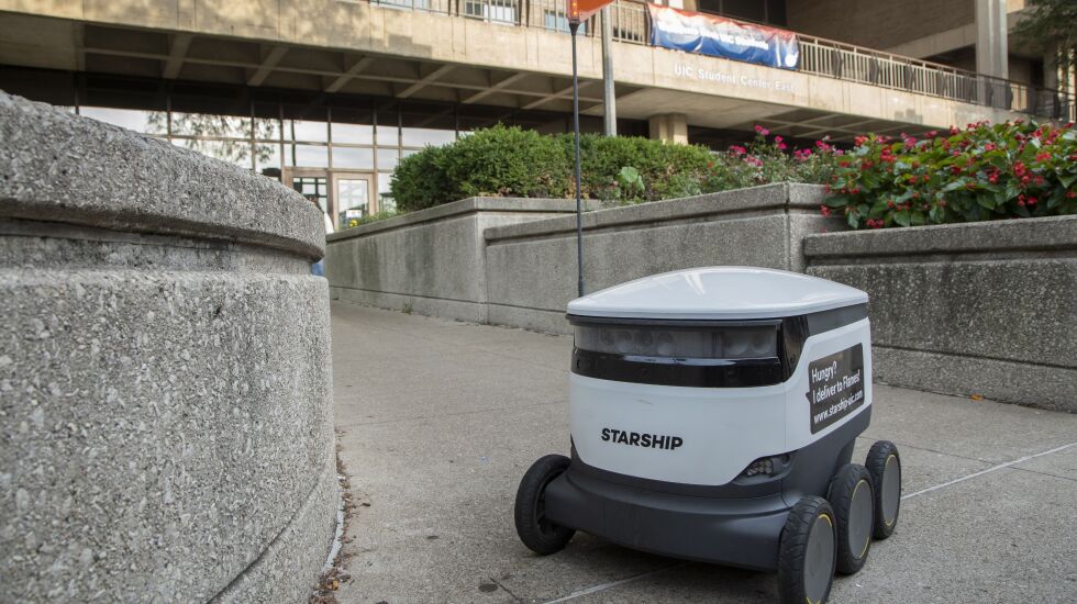 Robotic personal delivery devices described as “beverage coolers on wheels” will soon be delivering more restaurant meals and groceries in and around the campus of the University of Illinois Chicago.