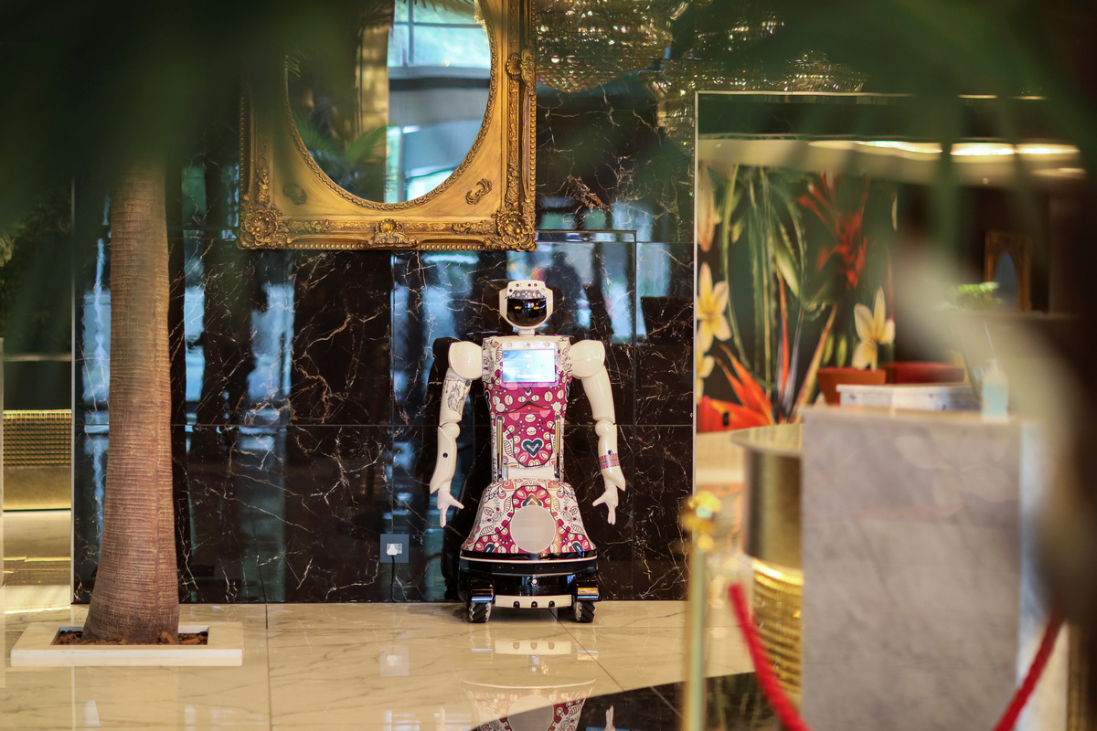 "It helps management to understand how customers are experiencing the facilities at the hotel," he said, after getting a robot painted in a riotous orange and white pattern to take a selfie.