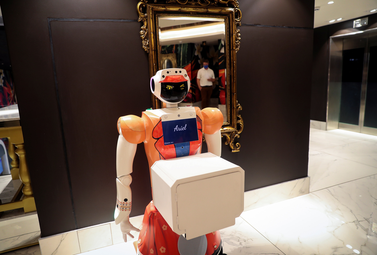 If the hotel receives a guest with COVID-19 symptoms, the robots could be deployed instead of people as a precaution.