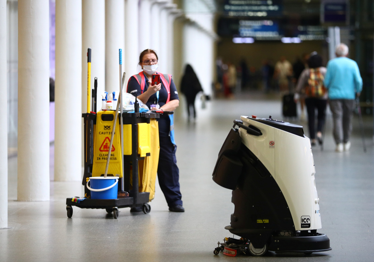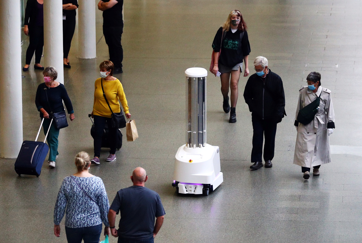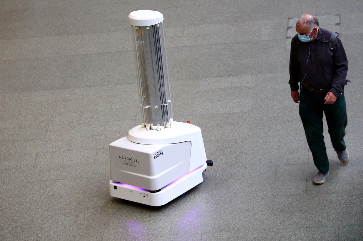 The robots use ultraviolet light to sweep large areas without the need for chemical disinfectant, the station said, adding the technology could kill nearly 100% of bacteria and viruses - including the coronavirus - on surfaces and in the surrounding air in minutes.