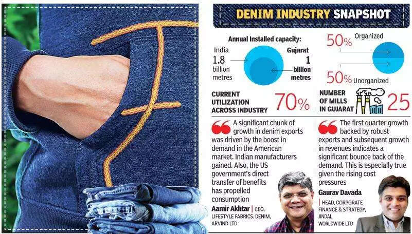 "Demand from the international market, including countries like the US and those in Europe has improved significantly, and orders have begun pouring in. Export orders, in fact, were a saving grace for denim makers as they helped compensate for the slump in domestic demand from April to June 2021 – a time when the second wave of Covid-19 was at its peak and a slew of restrictions were imposed to curb the spread," said Gaurav Davada, head – corporate finance and strategy, Jindal Worldwide Limited.