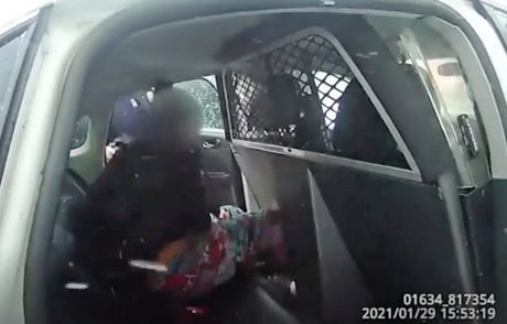 The police body camera video shows numerous police cars and officers on the snowy scene. After being restrained on the ground, the girl, wearing flowered leggings and a black sweatshirt, asks, “Can you please get the snow off of me? It's cold.”
