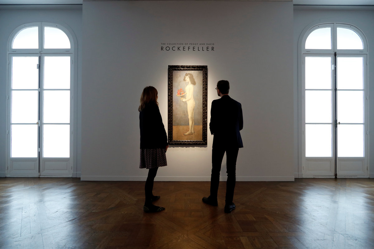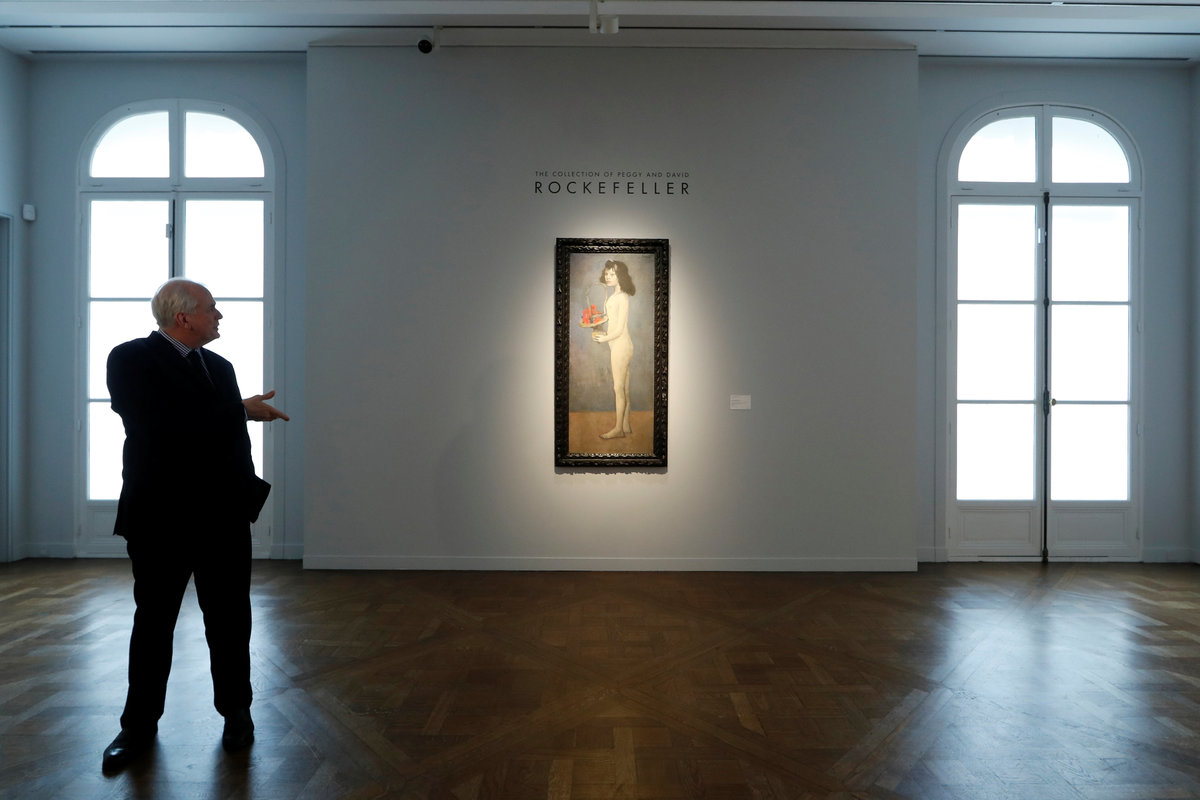 Ten works on display at Christie's in Paris, including the Picasso and a Monet, represent a small fraction of the 1,600 lots once owned by billionaire banker David Rockefeller and his wife Peggy that will go under the hammer in May for charity.