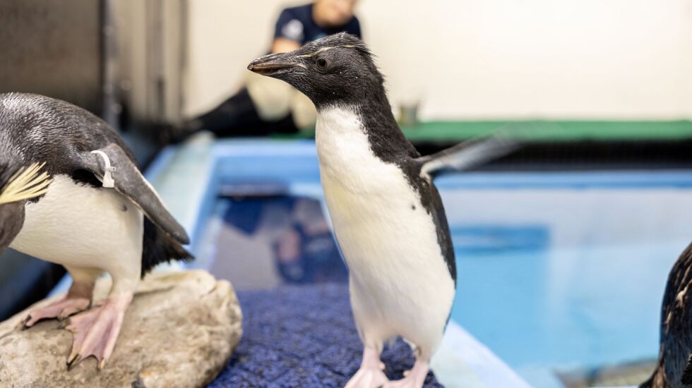 When it hatched, the chick weighed almost 2 pounds and now weighs a little more than 4 pounds, according to the aquarium, and is between 1 and 1.5 feet tall. It’s very close in appearance to an adult rockhopper, but still doesn’t sport the species’ distinctive yellow eyebrow feathers.