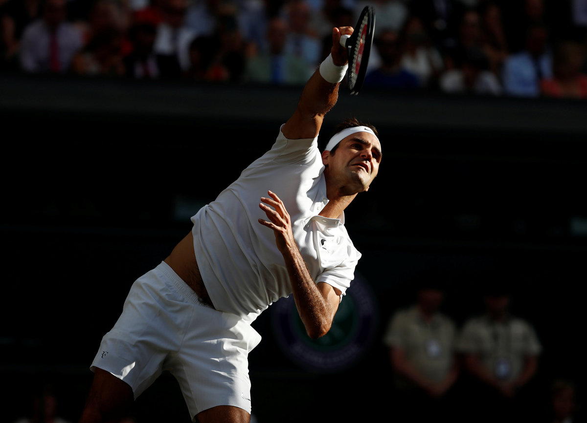 While the Swiss master had the purists purring on Centre Court as he dispatched Bulgaria's Grigor Dimitrov 6-4 6-2 6-4 in the fourth round, across the concourse on Court One his main rival Rafa Nadal was bowing out in a gruelling five-setter against Luxembourg's Gilles Muller.