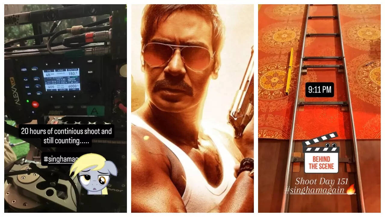 The third instalment in Shetty’s popular 'Singham' franchise, marks the return of Ajay Devgn in the lead, along with a host of B-town biggies including Kareena Kapoor Khan, Deepika Padukone, Ranveer Singh, Tiger Shroff, Akshay Kumar and Arjun Kapoor. A viral post doing the rounds on fan-handles gives a peek at some of the behind-the-scenes action. Photos from the sets were shared with the caption "Shoot day 151" while another which gave a glimpse of the camera and screens read, "20 hours of continuous shoot and still counting."