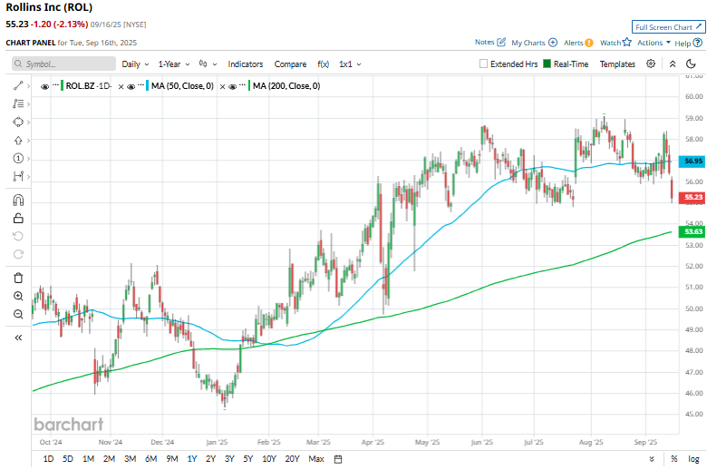 In the competitive pest control and services space, contender H&R Block, Inc. (HRB) has trailed behind Rollins in terms of performance. HRB shares have declined 22.1% over the past 52 weeks and are down 5% year-to-date.