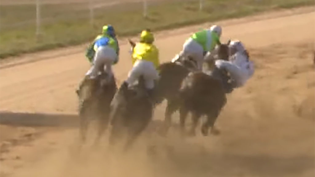 Video captured the moment Barr bumped horses with local Roma jockey John Rudd, who pulled her up.