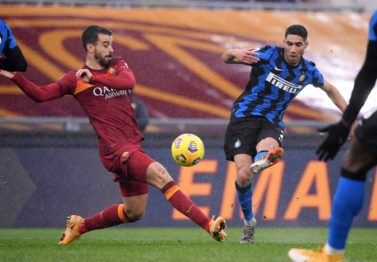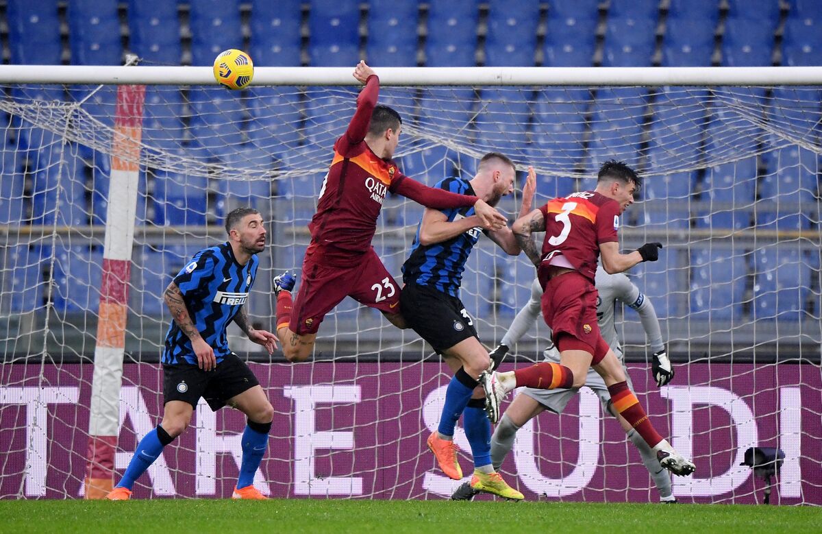 Lorenzo Pellegrini’s deflected shot put the hosts in front at halftime, but Inter mustered a spirited response and Milan Skriniar headed in a deserved equaliser after the break.