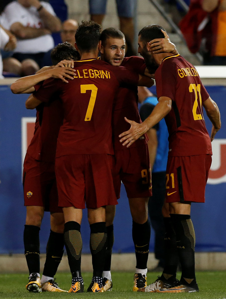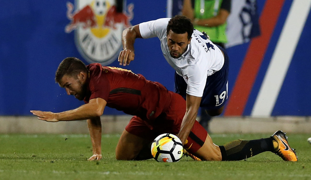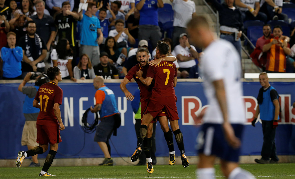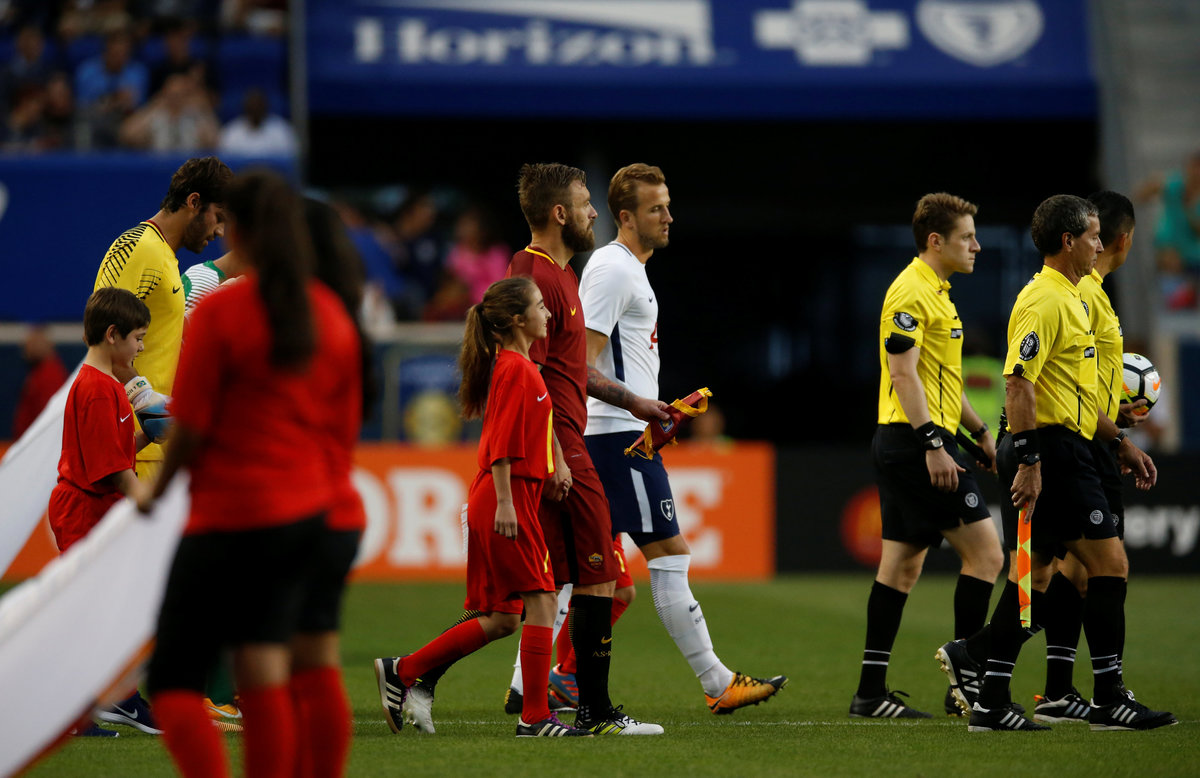 Soccer Football - AS Roma vs Tottenham Hotspur - International Champions Cup - Red Bull Arena, New Jersey - July 25, 2017 Tottenham's Kevin Wimmer in action with Roma's Marco Tumminello REUTERS/Mike SegarSoccer Football - AS Roma vs Tottenham Hotspur - International Champions Cup - Red Bull Arena, New Jersey - July 25, 2017 Roma's Cengiz Under celebrates scoring their second goal REUTERS/Mike SegarSoccer Football - AS Roma vs Tottenham Hotspur - International Champions Cup - Red Bull Arena, New Jersey - July 25, 2017 Roma's Kevin Strootman in action with Tottenham's Mousa Dembele REUTERS/Mike SegarSoccer Football - AS Roma vs Tottenham Hotspur - International Champions Cup - Red Bull Arena, New Jersey - July 25, 2017 Tottenham's Jan Vertonghen attempts to block a shot from Roma's Cengiz Under REUTERS/Mike SegarSoccer Football - AS Roma vs Tottenham Hotspur - International Champions Cup - Red Bull Arena, New Jersey - July 25, 2017 Tottenham's Harry Kane and Roma's Daniele De Rossi walk out on to the pitch before the match REUTERS/Mike Segar
