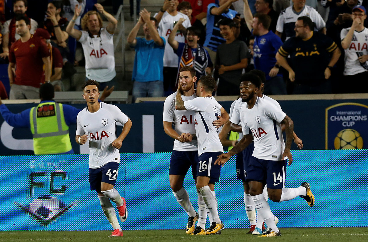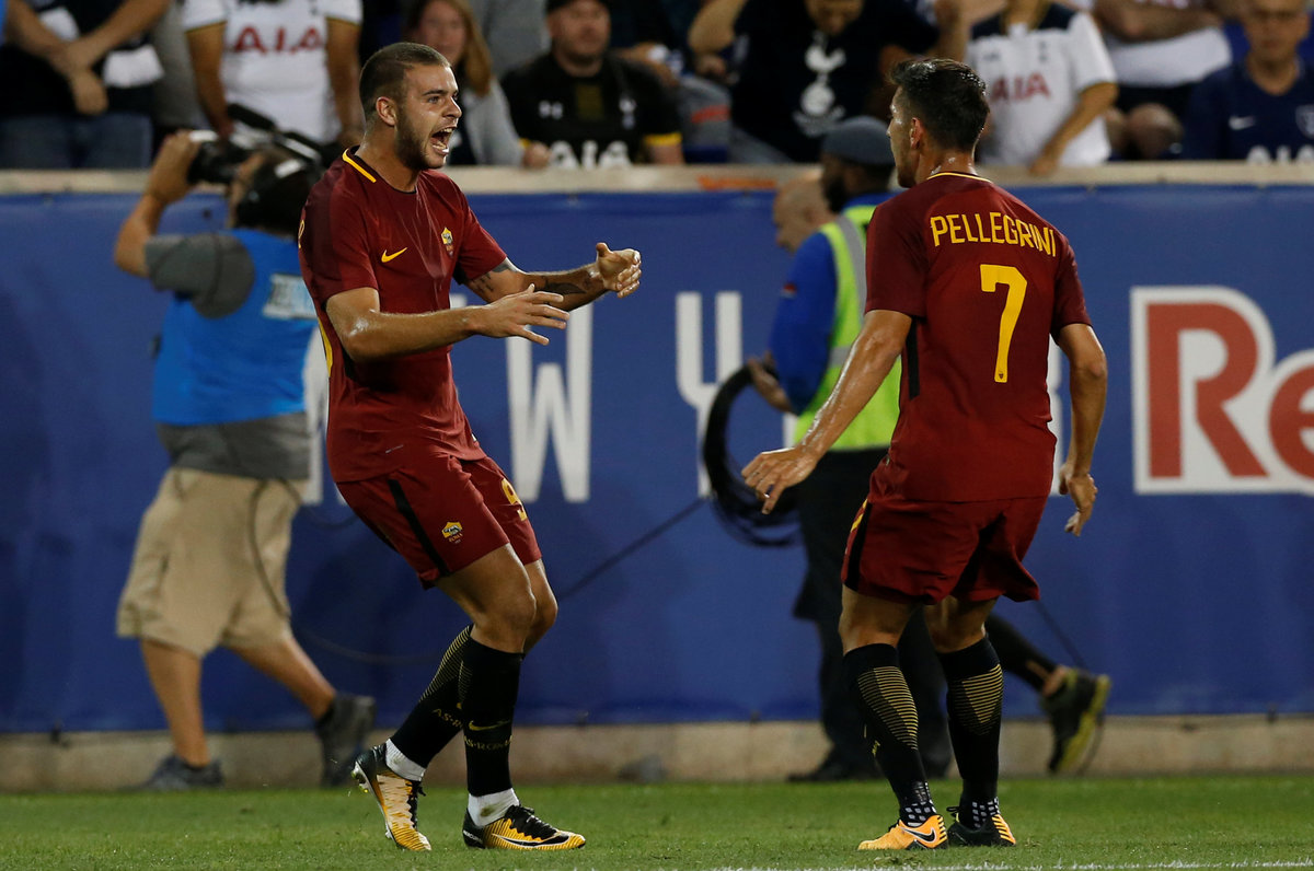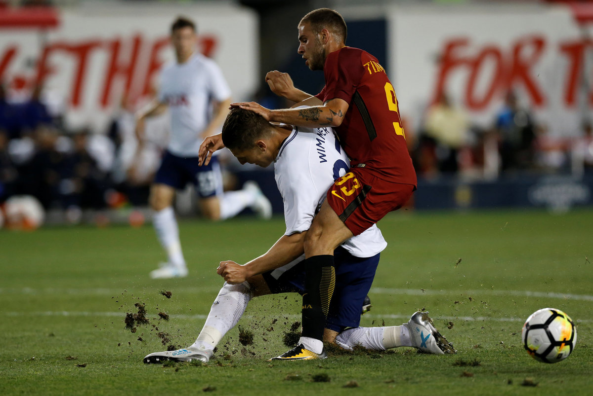 Soccer Football - AS Roma vs Tottenham Hotspur - International Champions Cup - Red Bull Arena, New Jersey - July 25, 2017 Tottenham's Kevin Wimmer in action with Roma's Marco Tumminello REUTERS/Mike SegarSoccer Football - AS Roma vs Tottenham Hotspur - International Champions Cup - Red Bull Arena, New Jersey - July 25, 2017 Roma's Cengiz Under celebrates scoring their second goal REUTERS/Mike SegarSoccer Football - AS Roma vs Tottenham Hotspur - International Champions Cup - Red Bull Arena, New Jersey - July 25, 2017 Roma's Kevin Strootman in action with Tottenham's Mousa Dembele REUTERS/Mike SegarSoccer Football - AS Roma vs Tottenham Hotspur - International Champions Cup - Red Bull Arena, New Jersey - July 25, 2017 Tottenham's Jan Vertonghen attempts to block a shot from Roma's Cengiz Under REUTERS/Mike SegarSoccer Football - AS Roma vs Tottenham Hotspur - International Champions Cup - Red Bull Arena, New Jersey - July 25, 2017 Tottenham's Harry Kane and Roma's Daniele De Rossi walk out on to the pitch before the match REUTERS/Mike Segar