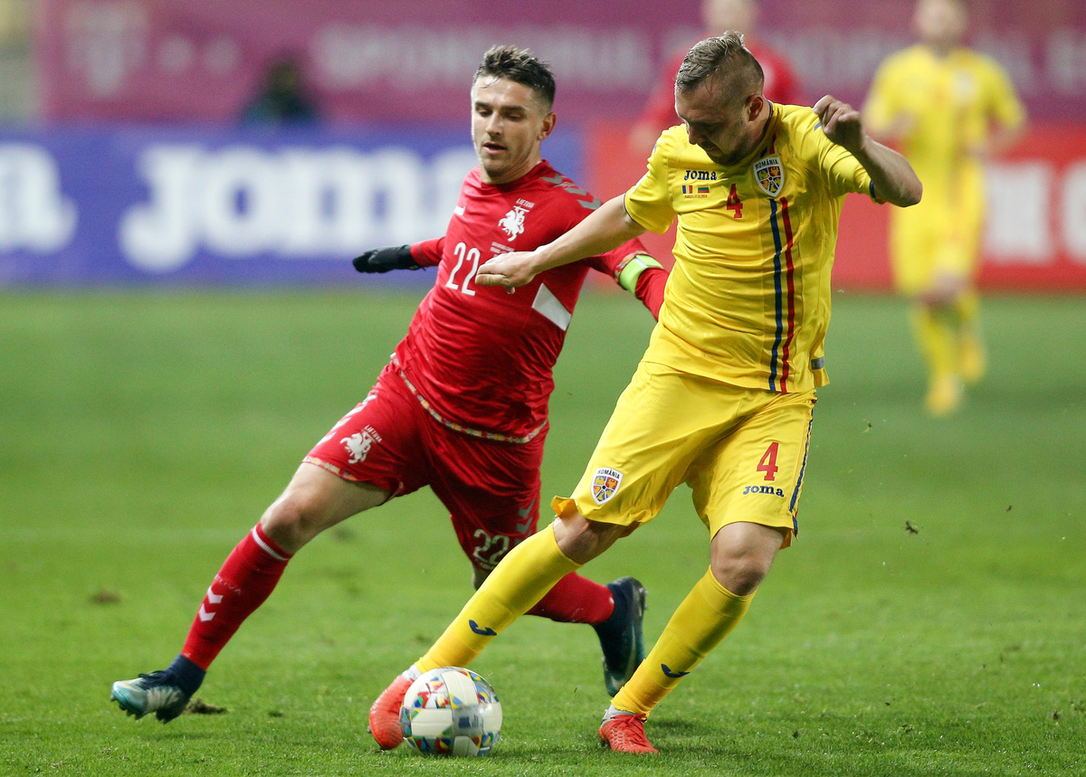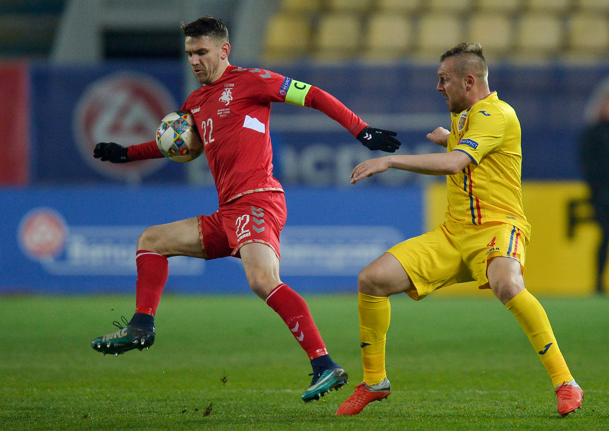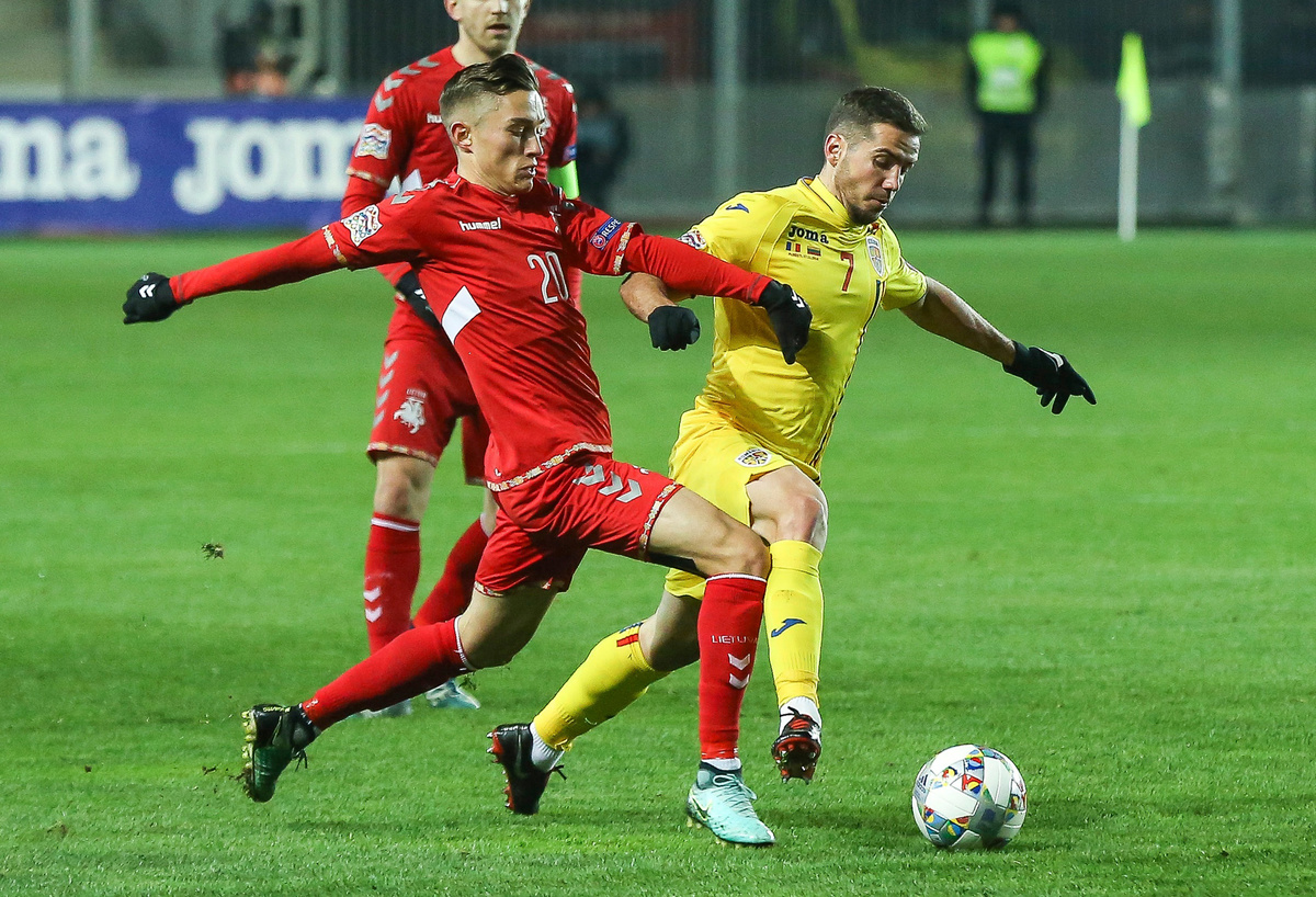 Soccer Football - UEFA Nations League - League C - Group 4 - Romania v Lithuania - Ilie Oana Stadium, Ploiesti, Romania - November 17, 2018 Lithuania's Modestas Vorobjovas in action with Romania's Nicolae Stanciu Inquam Photos/George Calin via REUTERS
