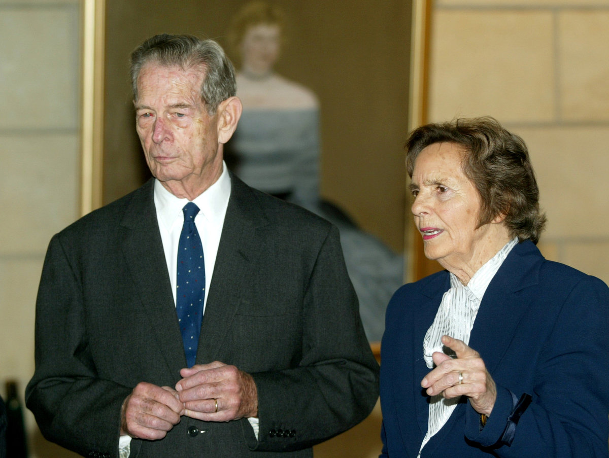 FILE PHOTO - Romania's former King Michael (L) and his wife Queen Anne (R) wait for visitors at Elisabeta Palace on Michael's name day in Bucharest, November 8, 2004. REUTERS/Bogdan Cristel/File Photo/File PhotoFILE PHOTO - Romania's exiled King Michael and his wife Anna are surrounded by well-wishers as he arrives in his homeland for a five-day visit, a week after the new centrist government restored his citizenship, February 28, 1997. REUTERS/Radu Sigheti/File PhotoFILE PHOTO - Former Romanian King Michael waves to supporters beside Queen Anne on the terrace of Elisabeta Palace, a former royal residence in Bucharest, May 18, 2001. REUTERS/File PhotoFILE PHOTO - Romania's former King Michael receives flowers as he leaves after laying a wreath at the statue of King Carol I, the founder of Romania's royal dynasty, in Bucharest May 10, 2012. REUTERS/Radu Sigheti/File PhotoFILE PHOTO - Romania's former King Michael waves to his supporters after a celebration concert marking his 90th anniversary at the National Opera in Bucharest October 25, 2011. REUTERS/Bogdan Cristel/File PhotoFILE PHOTO - Romania's exiled King Michael (C) holds a candle as he attends the Orthodox Easter midnight mass together with his wife Anna and Bishop Nicolae at the Orthodox cathedral of Timisoara, 600 km, (375 miles) west of Bucharest April 27, 1997. REUTERS/Radu Sighteti/File Photo