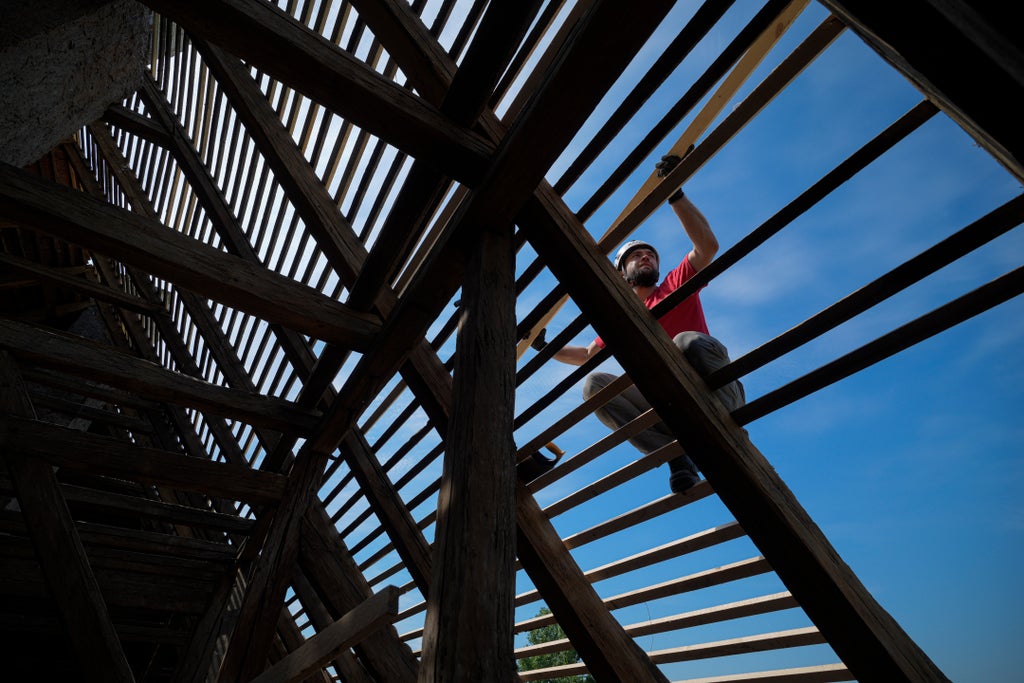 As the evening draws in on a Saturday, the volunteers are busy measuring, sawing and hammering away at the castle’s roof timbers. The overhaul is a labor-intensive task, but it will help keep the storied, centuries-old castle from becoming irreparable.