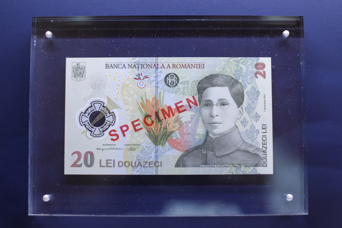 The new 20 lei ($4.56) note, which features an image of Teodoroiu - the first female army officer - will be in circulation from December.
