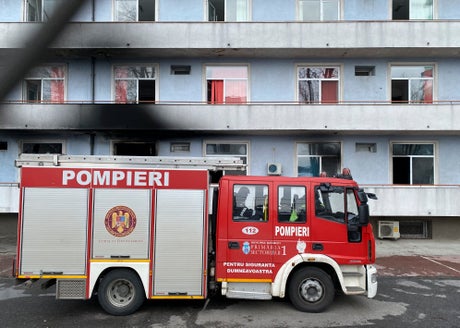 Hours later, charred balconies could be seen at the Matei Bals hospital where health authorities organized the start of Romania's vaccination efforts.