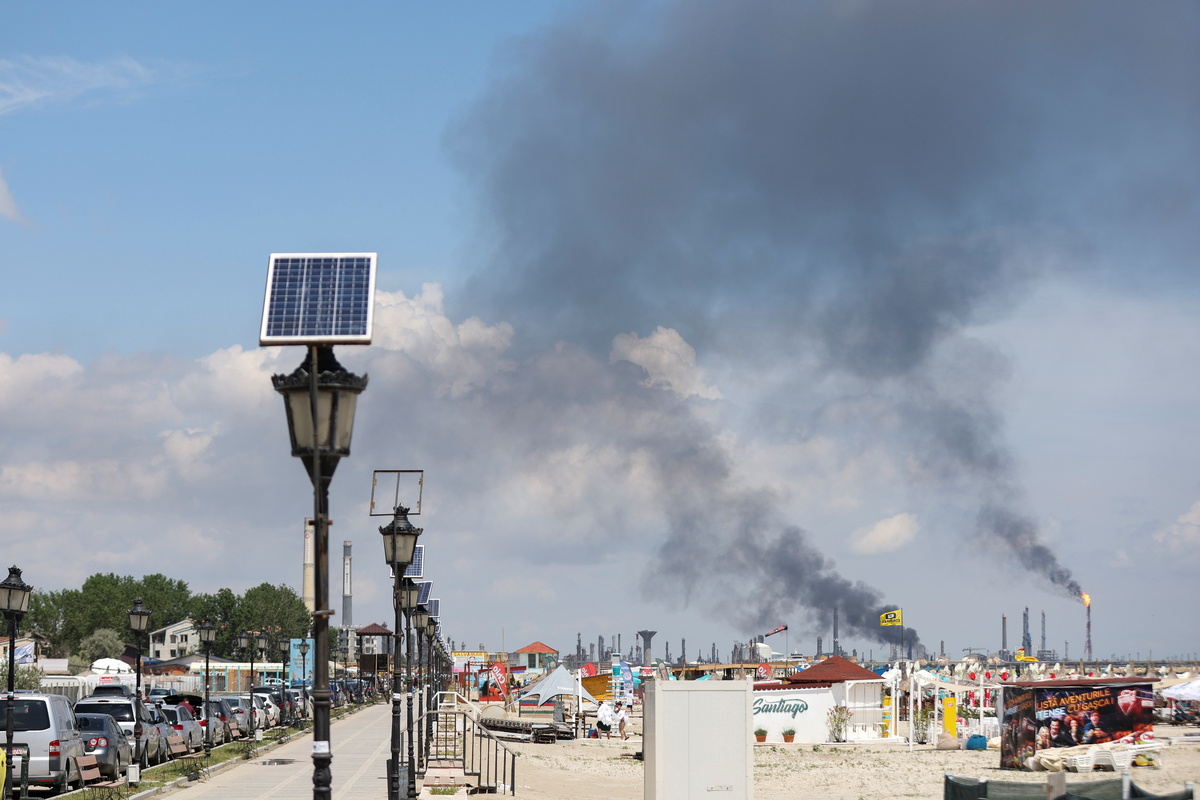 Video footage from a nearby beach in the coastal resort of Mamaia showed black smoke rising from the area next to the refinery and some tourists reported hearing a loud bang.
