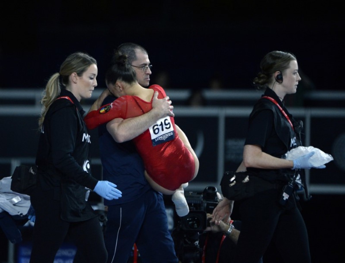The International Gymnastics Federation, citing the Romanian Federation, later confirmed the injury was a torn Achilles.