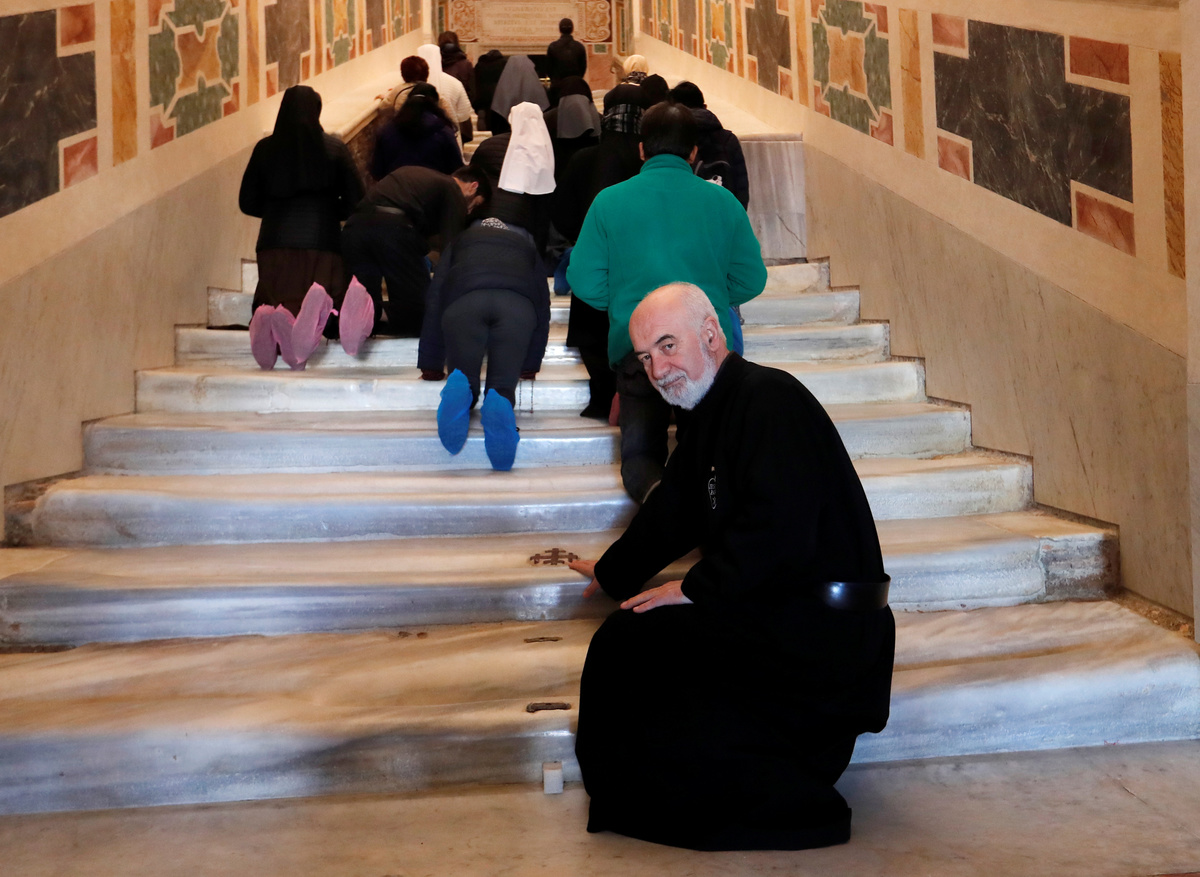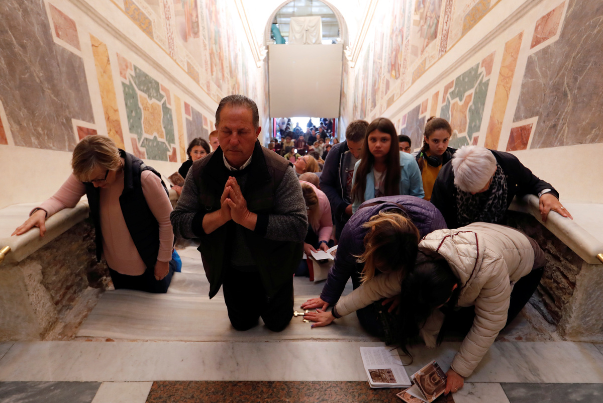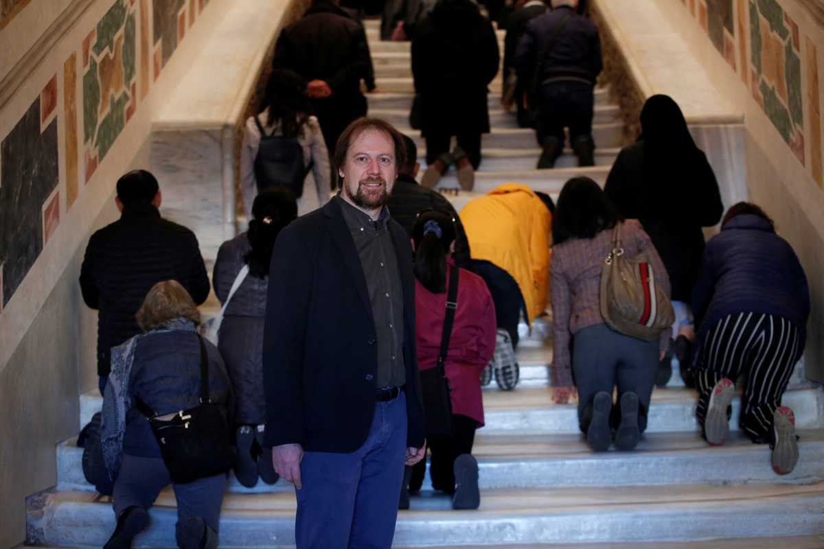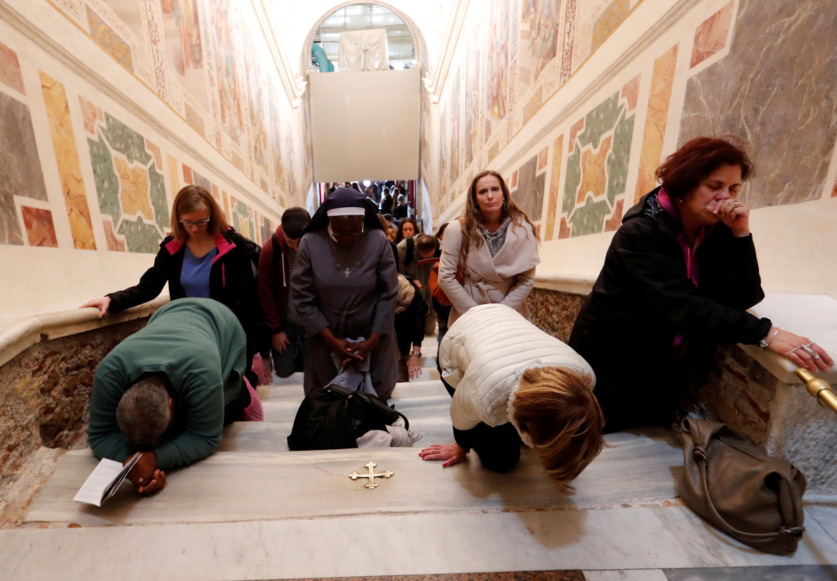 "We have seen these steps carved out in a totally unusual way. The feet of pilgrims had literally excavated them," said Father Francesco Guerra, rector of the Holy Stairs Sanctuary, which hundreds of thousands of pilgrims visit each year.